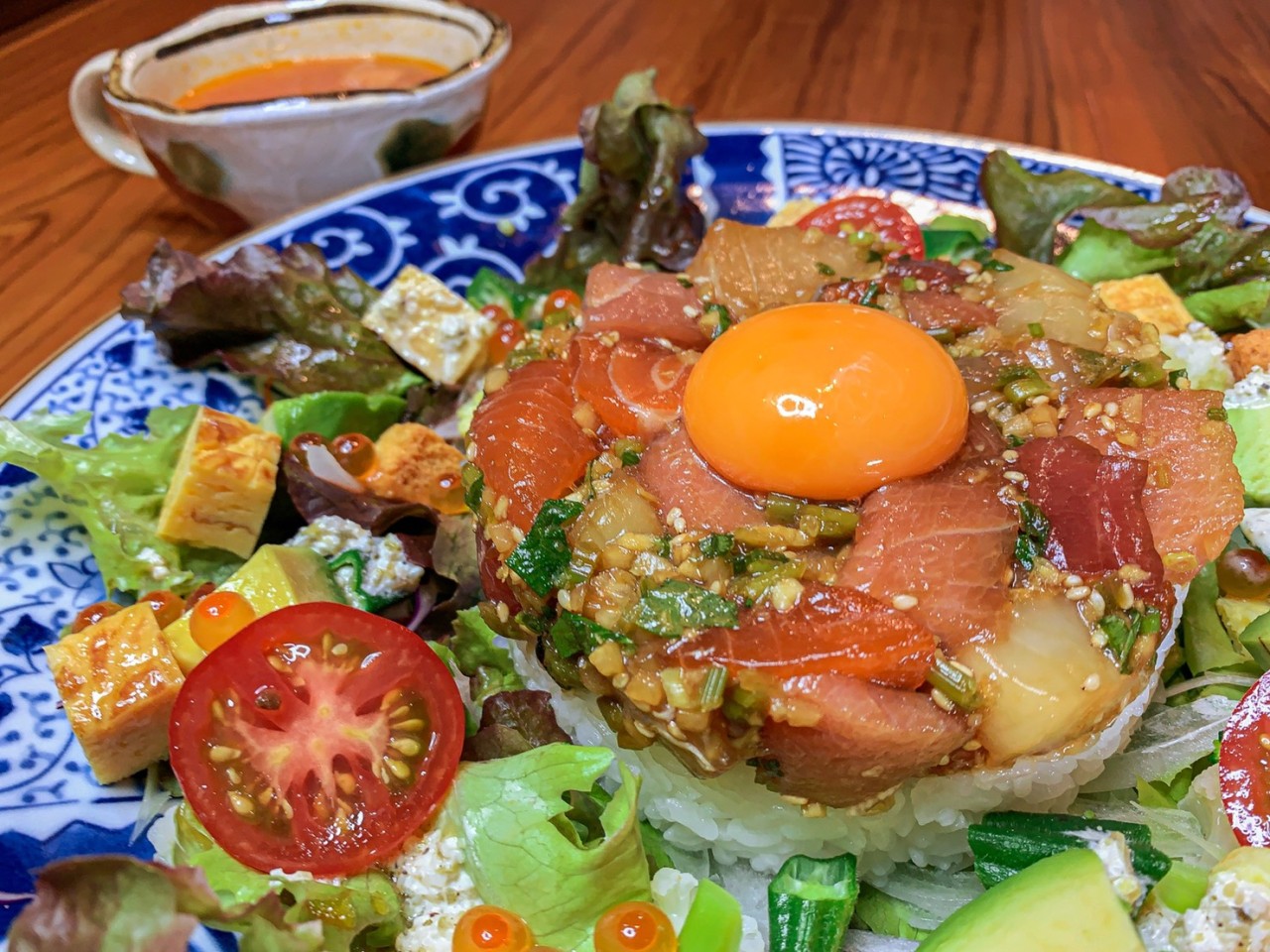 魚タレに絡めた海鮮ユッケはリピーター続出❣